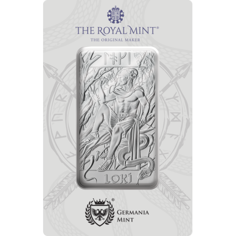 Loki 10 oz Silberbarren kombiniert das einzigartige Design der Royal Mint, geprägt in Silber höchster Qualität, in einer eleganten Germania Mint Verpackung. Er ist eine ausgezeichnete Wahl für Sammler und Münzkunstliebhaber.