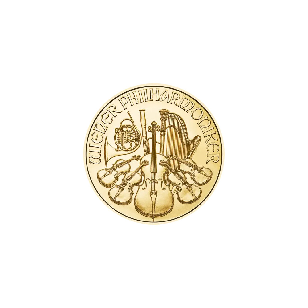 Die Wiener Philharmoniker verdanken ihren Namen dem berühmten österreichischen Orchester, das zu den besten der Welt zählt. Auf der Vorderseite der Goldmünze ist die große Orgel des Wiener Musikvereins abgebildet. Unterhalb der Orgel sind das Gewicht von 1/10 Unze, der Feingehalt von 999,9, das Prägejahr und der Nennwert von 10 EURO eingeprägt. Darüber ist die Inschrift "REPUPLIK ÖSTERREICH" eingeprägt. Auf der Rückseite sind einige Musikinstrumente des Philharmonischen Orchesters abgebildet und am oberen Rand ist der Name des Orchesters und die Goldmünze "WIENER PHILHAMRONIKER" zu sehen. Wie die oben genannten Goldmünzen ist auch die Wiener Philharmoniker in den Größen 1 oz, 1/2 oz, 1/4 oz und 1/25 oz erhältlich.