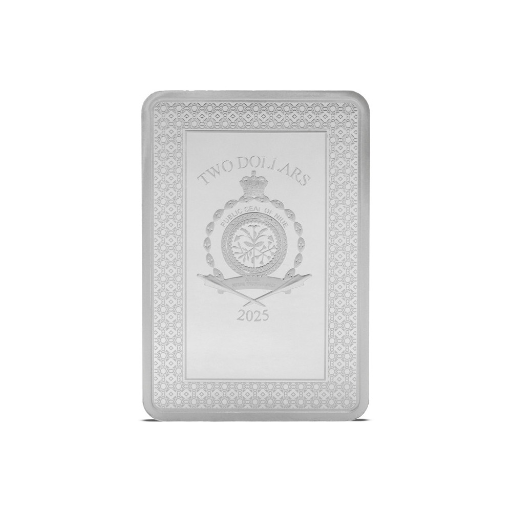 Die Rückseite der Münze enthält das öffentliche Siegel des Ausgabelandes Niue, die Angaben zum Nennwert "TWO DOLLARS" und das Ausgabejahr "2025"
