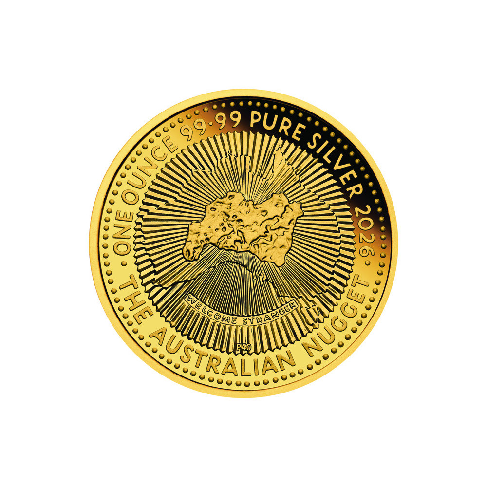 Die Rückseite der Münze, die aus den Archiven entnommen wurde, zeigt ein Motiv, das Devlin für das ursprüngliche Programm entworfen hat, das aber nie auf der Münze ausgegeben wurde. Das Motiv zeigt den "Welcome Stranger", den größten jemals gefundenen Nugget. Es wurde im Februar 1869 von den Goldsuchern John Deason und Richard Oates in Moliagul, Victoria, gefunden. Ihr Fund mit einem Gewicht von 2.284 Unzen war zu groß für die Waage und musste vor dem Wiegen in drei Teile zerlegt werden. Auf der Rückseite der Münze ist das Nugget von einer Zeichnung einer Landkarte Australiens umgeben und wird von einem Ring stilisierter Sonnenstrahlen flankiert. Das Münzbild enthält den Namen des Nuggets und das Münzzeichen "P40". Die Rückseite trägt die Aufschrift "THE AUSTRALIAN NUGGET" sowie das Gewicht, den Feingehalt und die Jahreszahl 2026.