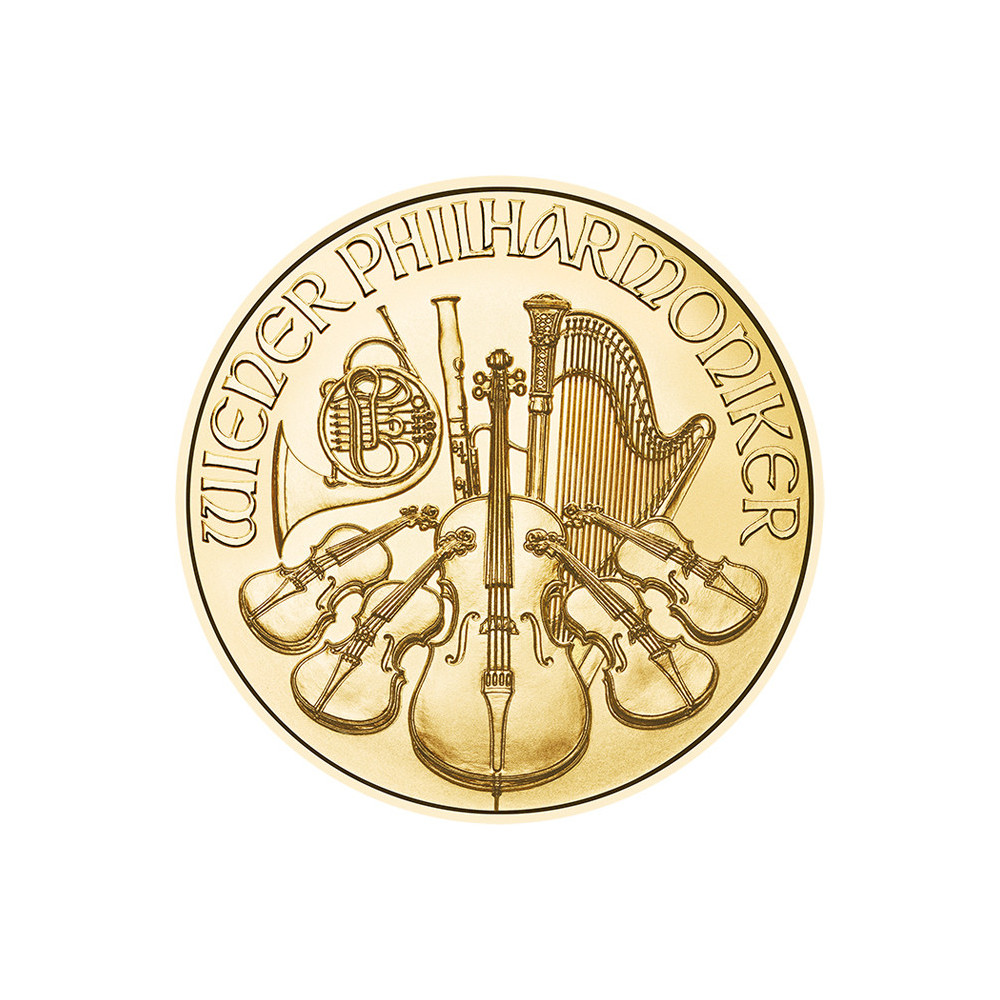 La Filarmónica de Viena debe su nombre a la famosa orquesta austriaca, una de las mejores del mundo. El anverso de la moneda de oro representa el gran órgano de la Musikverein de Viena. Debajo del órgano figura el peso de 1/2 onza, la ley 999,9, el año de acuñación y el valor facial de 50 EUROS. Encima figura la inscripción "REPUPLIK ÖSTERREICH". En el reverso se representan algunos instrumentos musicales de la Orquesta Filarmónica y en el borde superior puede verse el nombre de la orquesta y la moneda de oro "WIENER PHILHAMRONIKER". Al igual que las monedas de oro anteriores, la Filarmónica de Viena está disponible en tamaños de 1 oz, 1/4 oz, 1/10 oz y 1/25 oz.