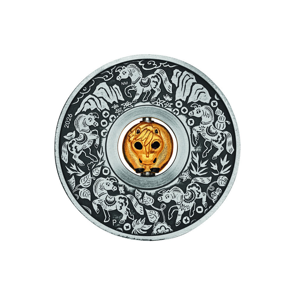 Cheval lunaire rotatif - 1 Oz - Pièce de collection en argent