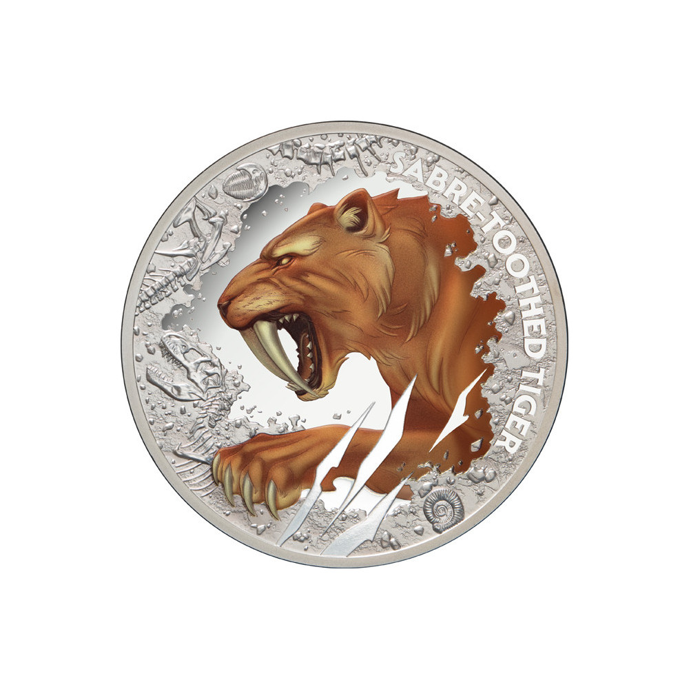 Tigre dai denti a sciabola (2026) - Moneta da collezione d'argento da 1 Oz.