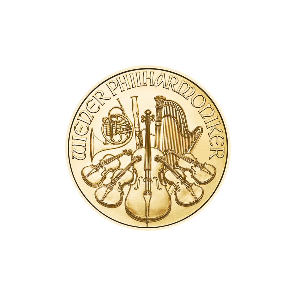 La Filarmonica di Vienna deve il suo nome alla famosa orchestra austriaca, una delle migliori al mondo. Il fronte della moneta d'oro raffigura il grande organo del Musikverein di Vienna. Al di sotto dell'organo sono impressi il peso di 1 oncia, la finezza di 999,9, l'anno di coniazione e il valore nominale di 100 euro. Sopra è impressa l'iscrizione "REPUPLIK ÖSTERREICH". Sul rovescio sono raffigurati alcuni strumenti musicali dell'Orchestra Filarmonica e sul bordo superiore sono riportati il nome dell'orchestra e la moneta d'oro "WIENER PHILHAMRONIKER". Come le monete d'oro di cui sopra, la Filarmonica di Vienna è disponibile nei tagli da 1/2 oz, 1/4 oz, 1/10 oz e 1/25 oz.